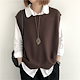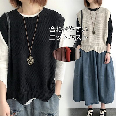 ニットベスト 秋 ベスト レディース ニット プルオーバー 秋冬 セーター トップス ブラウス アウター ジレ クルーネック トップス ノースリーブ 重ね着 無地 可愛い 丸首 ショート丈 レイヤード