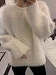 フェザーヤーン ニット セーター シャギーニット レディース 秋冬 シャギー トップス プルオーバー モヘア ニットプルオーバー 長袖 クルーネック ニットセーター 長袖