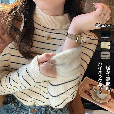 裏起毛 ニット セーター ハイネック インナーニット トップス 秋冬 裏ボア レディース ボーダー柄 ニットセーター プルオーバー 伸縮性 ベーシック 長袖 インナー カットソー ニットソー シンプル