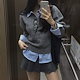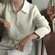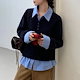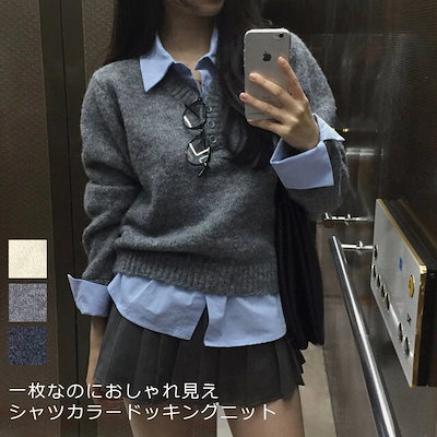 シャツカラードッキングニット レディース 秋冬 レギュラーカラー ニット シャツニット ニットトップス レイヤード風 ドッキング ドロップショルダー グレー オフホワイト ネイビー 30代
