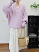 ニット プルオーバー ドルマン レディース ラメ入り 秋冬 ドルマンスリーブニットプルオーバー トップス セーター 大きいサイズ Vネック ショート丈 ゆったり ニットプルオーバー ボリューム袖 袖口