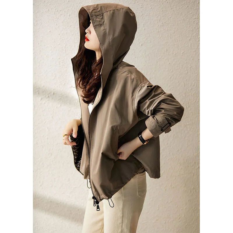 韓国ファッション ショット丈 アウター レディース トレンチコート 春 日系 フード付き ファスナー 百掛け トレンチコート