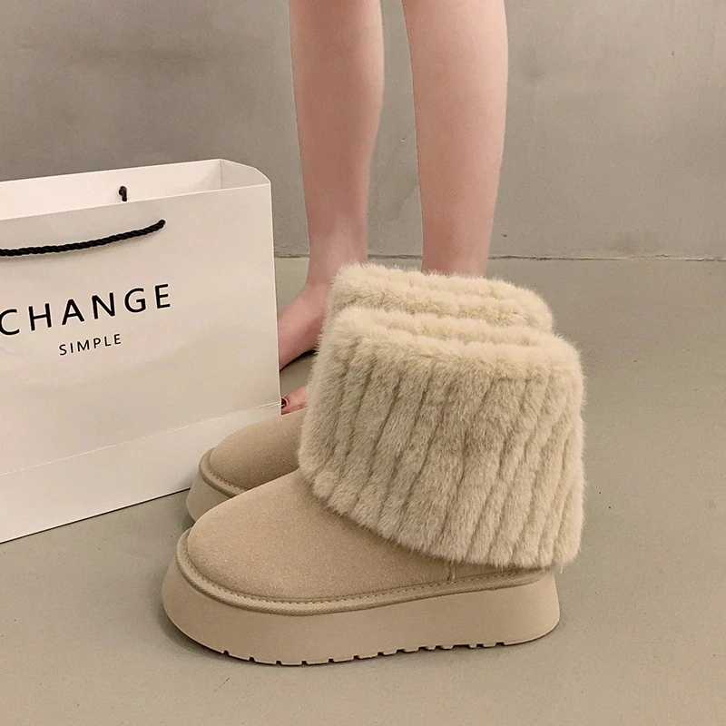 2025秋冬 韓国っぽ 厚底 ムートンブーツ 防寒 あったか ブーツ 靴 暖かい 美脚 脚長 色っぽ 女っぽ レディース ファッション カジュアル きれいめ 大人っぽ 上品 フェミニン 秋冬