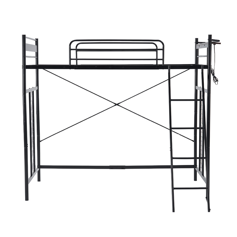 【ブラック】システムベット 3WAYロフトベッド シングル 収納付き 北欧風 スチール 耐震 コンセント付き メッシュパネル付き 高さ3段階