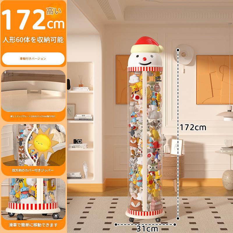 ぬいぐるみ収納 透明円柱 ファスナータイプ ぬいぐるみ収納ケース 収納ぬいぐるみ 大容量 陳列ケース DIY人形展示ボック ぬいぐるみ な丸い収納桶 おもちゃ入れ 持ち運び便利2