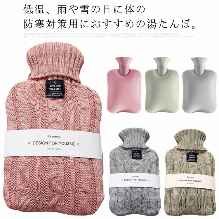 湯たんぽ 1000ml ニットカバー付き お湯入れ 注水式 暖かい あったか 保温 防寒グッズ 肩 足 腹 冷え対策 生理期 暖房 かわいい ゆたんぽ おしゃれ エコ 節電 防災グッズ クリスマ0