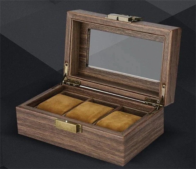激安セール 収納ケース 丈夫 小物収納 アクセサリー 腕時計ケース 3格子 革 レトロ 木目 時計ケース266012900