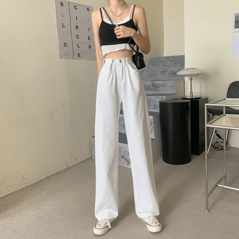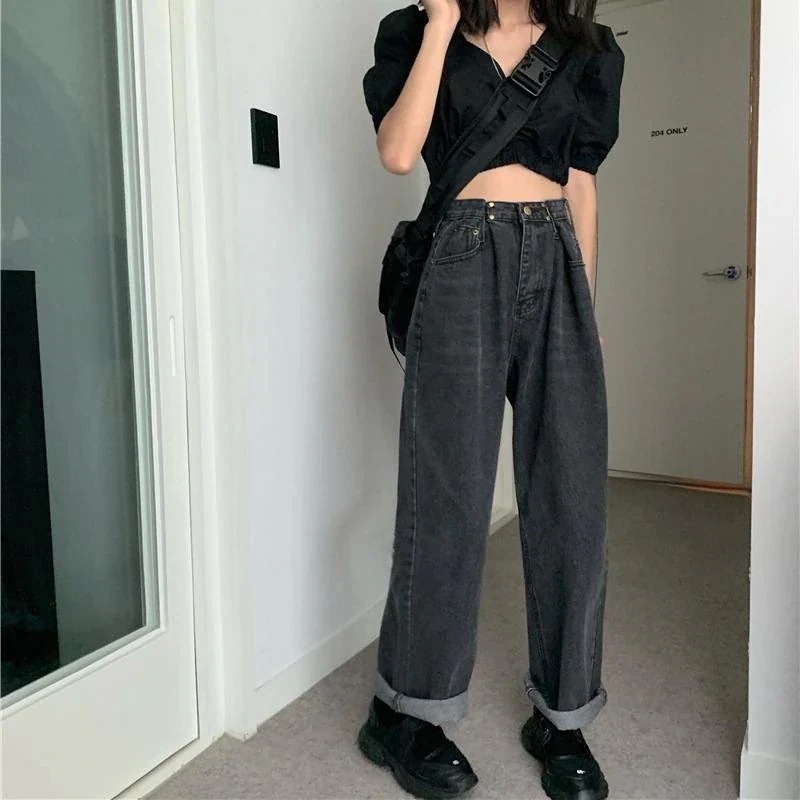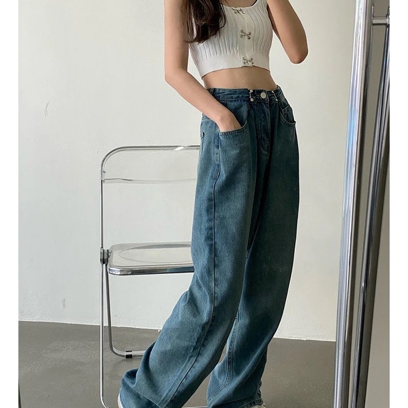ウエスト調節可能 デニム パンツ クロップド丈 ハイウエスト ワイドルーズ デニム・ジーンズ [4タイプ]0