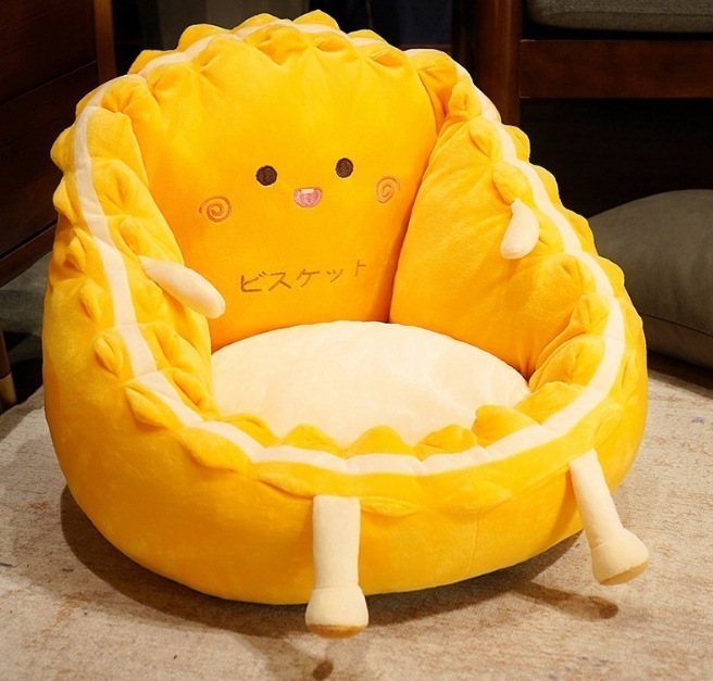 クッション 可愛い表情の座布団 45x45 2in1 座椅子 取り外し可能 座布団 大きい 65x65 丸型 リクライニング 在宅 かわいい 椅子 クッション 大人 子供 詰め綿 シートクッション フ