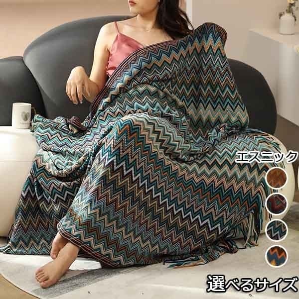 フリンジ付きブランケット ブランケット アジアン エスニック おしゃれ マルチカバー タオルケット ニット 冷房対策 フリンジ ソファ ベッドカバー オールシーズン インテリア ソファーカバー0