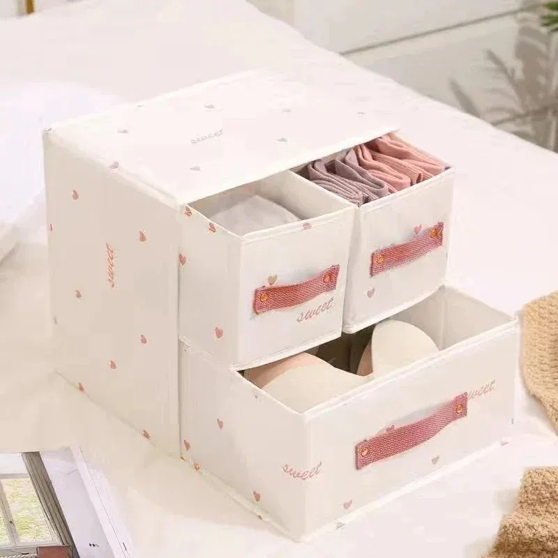 下着収納ボックス2層 ランジェリー 折りたたみ 蓋付き 仕切り 小物整理ボックス 多機能 おしゃれ 省スペース 引出し 防湿 防カビ 水洗い0
