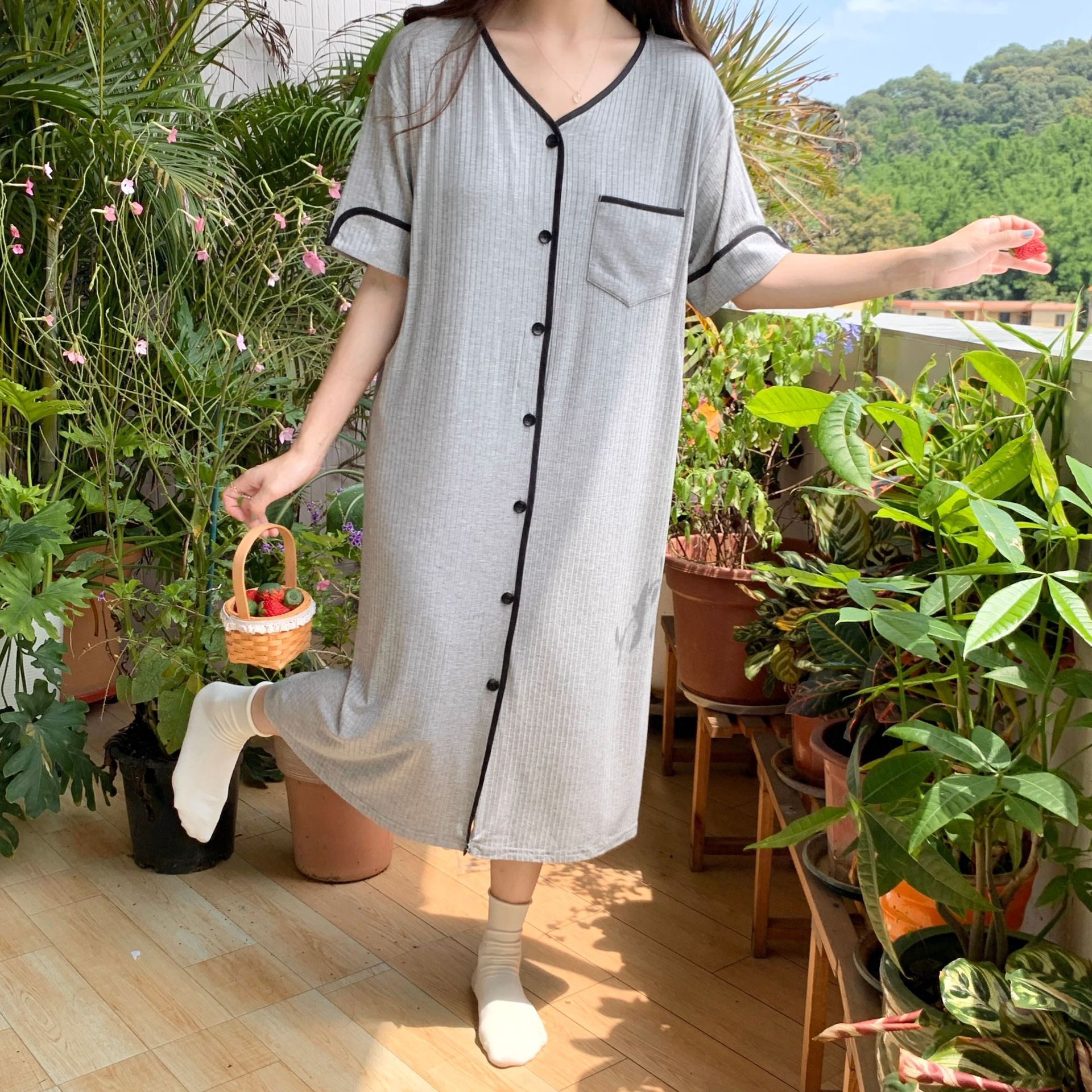 妊婦 ホームウェア マタニティ乳房パッド付き と モーダル マタニティ ナイトウェア 授乳用 産後 ナイトガウン0