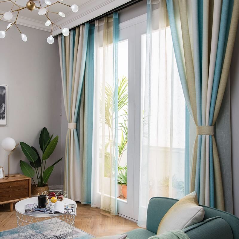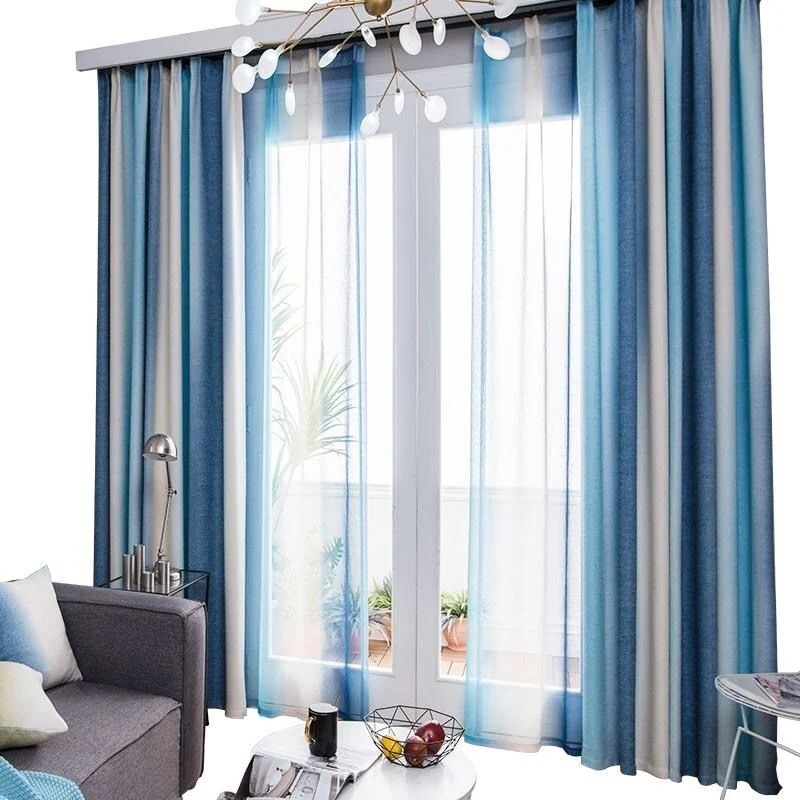 カーテン グラデーション 遮光3級 西海岸 ン ストライプ 採光 ガーゼ オシャレ 2倍ヒダ仕様 おしゃれ リビング レース かわいい 断熱 間仕切り出窓0