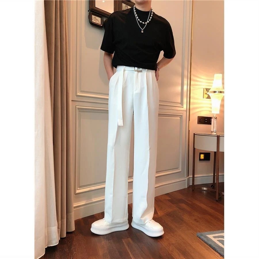 ホワイト ドレープ感 メンズ ゆったり ストレートパンツ 純色 カジュアル おしゃれ 通勤 スーツパンツ0