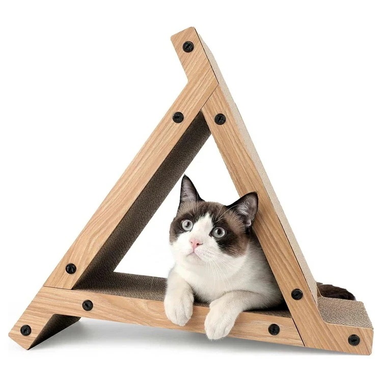 猫用トライアングル型キャットハウス 猫用爪とぎ 猫ハウス キャットハウス キャットタワー ダンボールハウス 猫箱 猫ベッド 猫爪とぎボックス おもちゃ 組み立て式 高密度段ボール 収納簡単 ストレス解