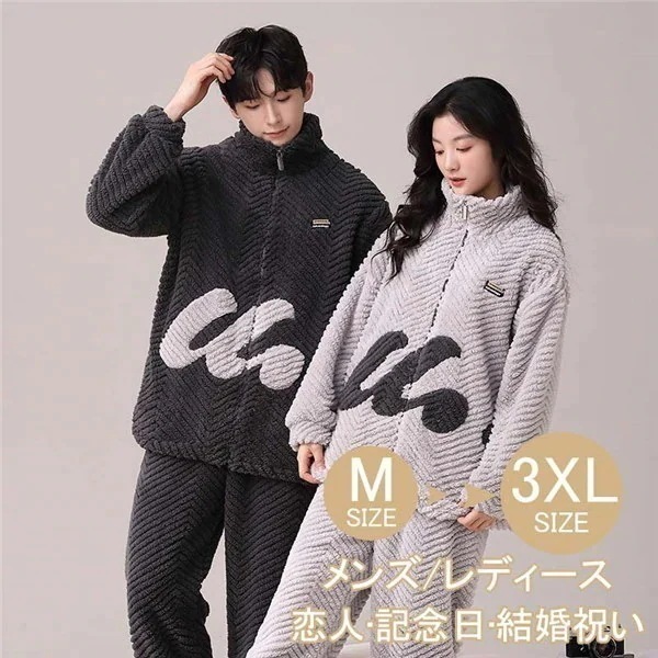 部屋着 かわいい ペア パジャマ もこもこ 癒し感 ウェア レディース メンズ 男女兼用 裏起毛 もこもこ ボア 用 長袖 用 あったか カップル 誕生日 プレゼント お揃い お家時間0