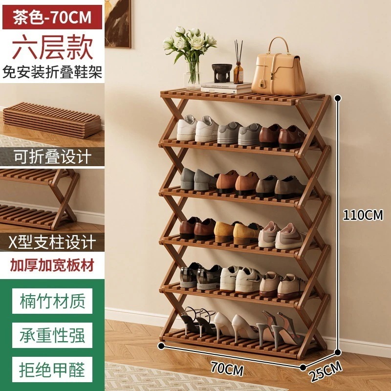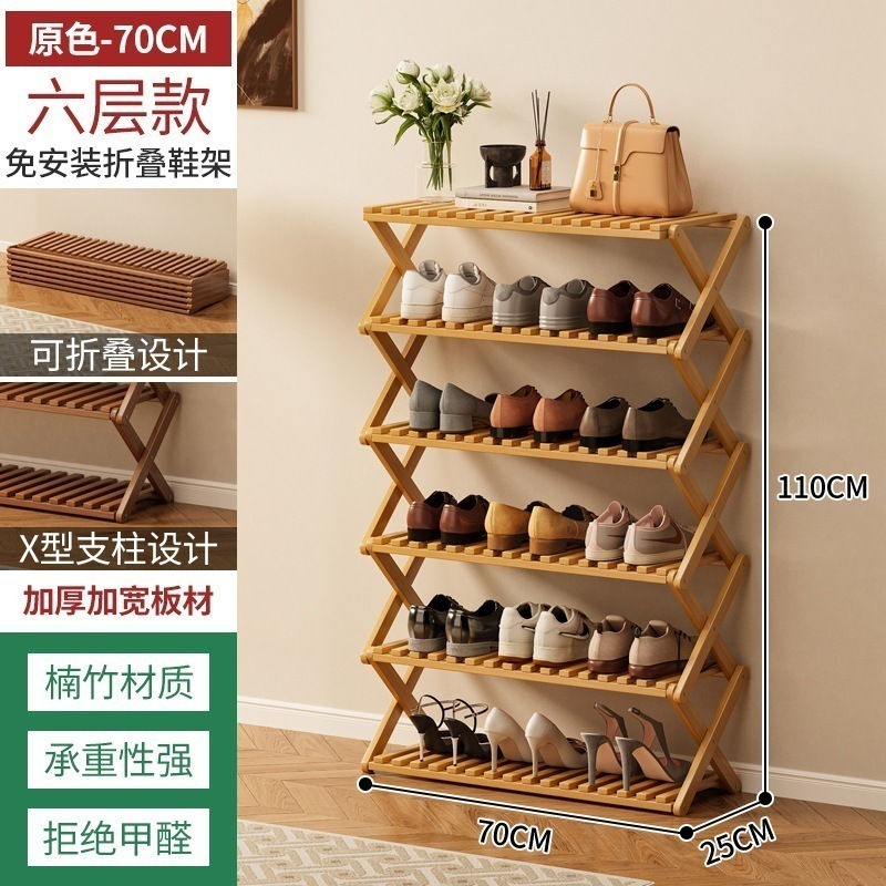 組立不要 ラック 6段 下駄箱 伸縮 フォールディング 靴収納棚 折りたたみ式 靴棚 折畳式 完成品 竹製 工具要らず 収納用ラック スリム おしゃれ オープンラック インテリ0