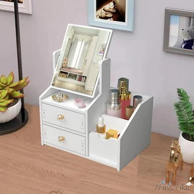 コスメボックス ホワイト 鏡付き ミラー角度調整可 引き出し付き 卓上ドレッサー メイクボックス コスメ収納0