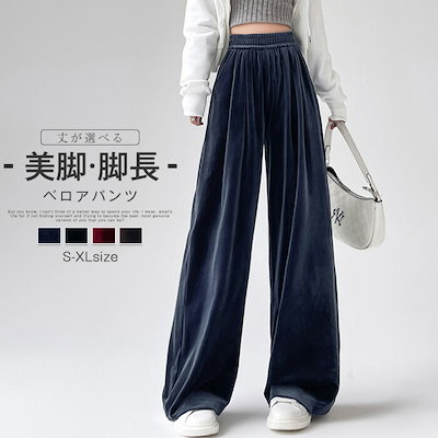 ワイドパンツ ベロア パンツ レディース ロングパンツ ベロアパンツ ボトムス ガウチョパンツ ワイド ズボン 普通丈 ロング丈 秋冬 ストレート イージーパンツ ウエストゴム ハイウエス
