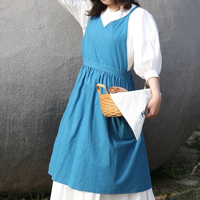 夏大人気エプロン 夏用薄手 日本・韓国風Vネックノースリーブ 撥水加工 単色 大人用コットンエプロン