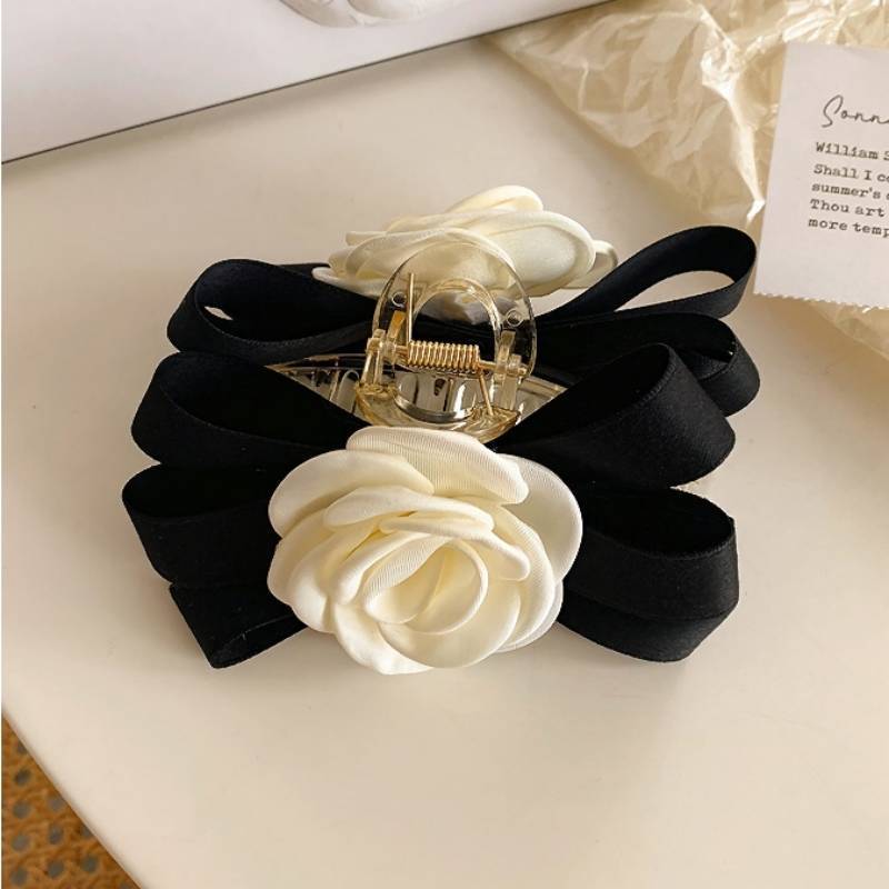 【自社生産 】ヘアクリップ ヘアクリップinsツバキヘアピン女性の黒い蝶の髪飾りメガ割