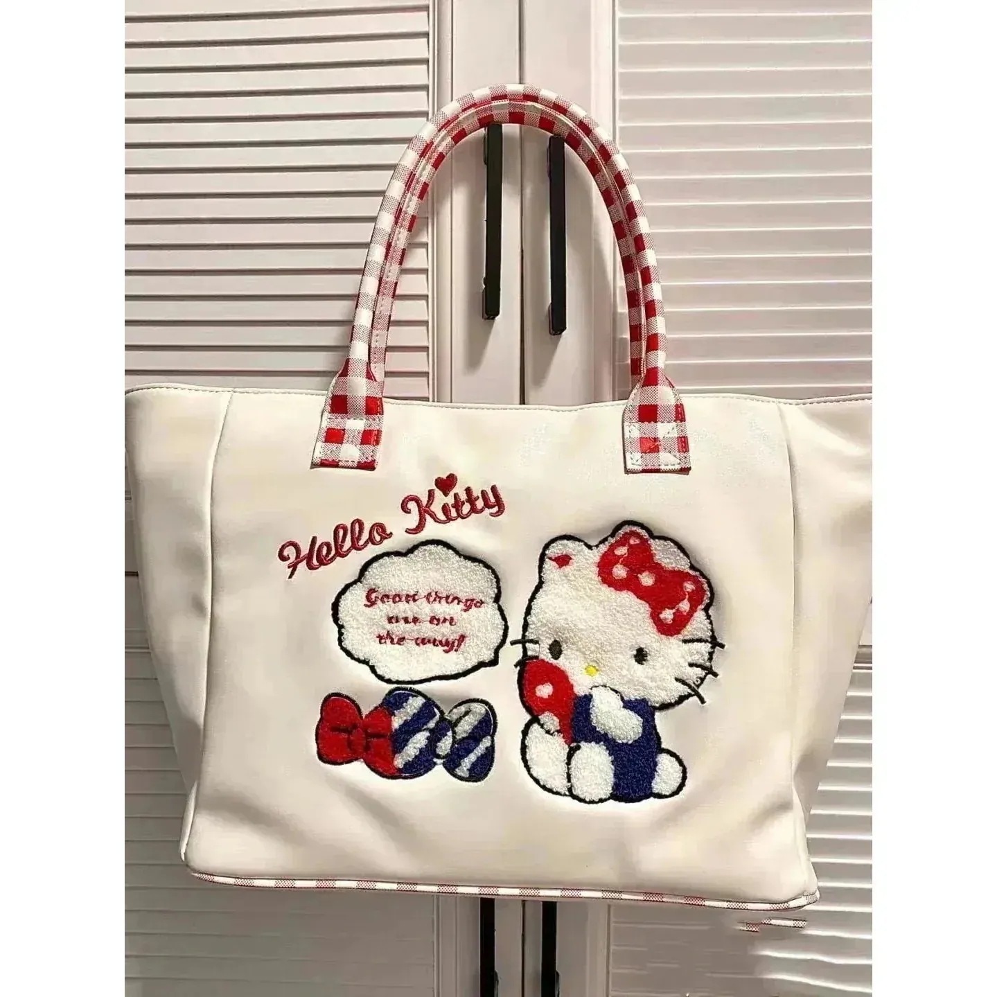 2026大人気【急速出荷】ハローキティ刺繍トートバッグ キュート スイート 女子 パーティー 大容量 ショルダーハンドバッグ