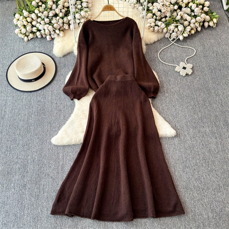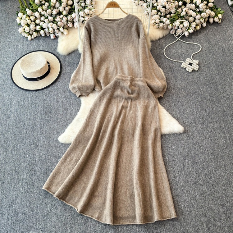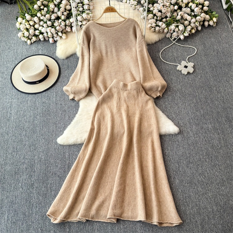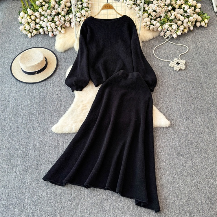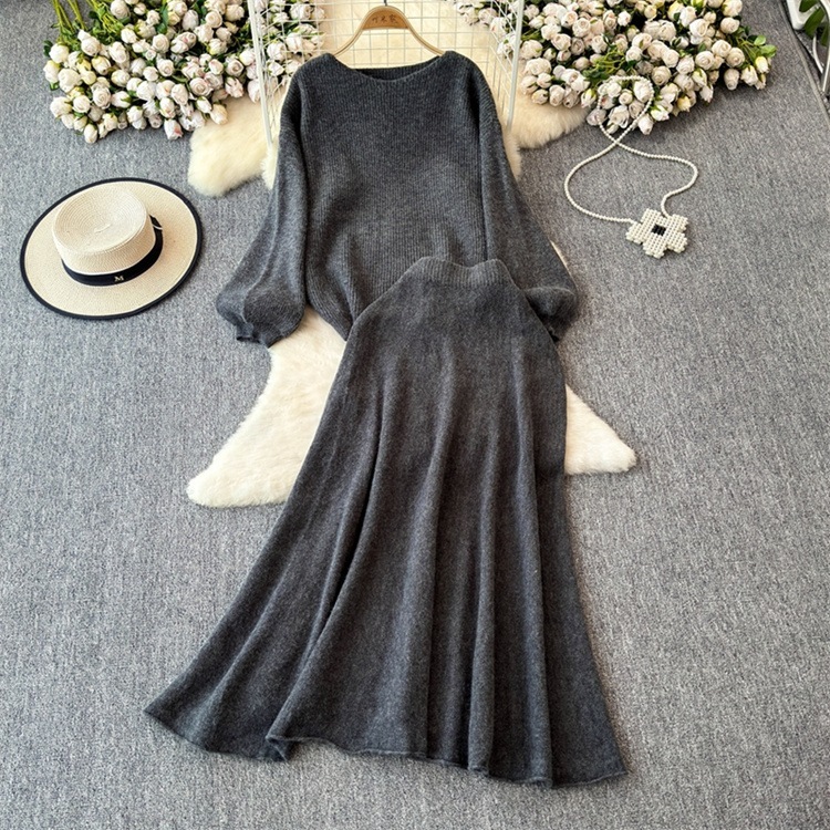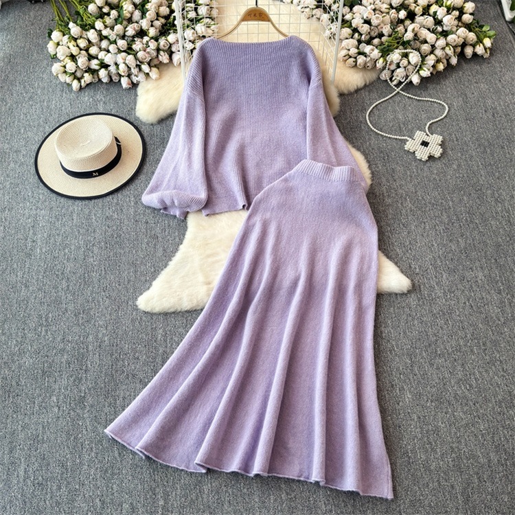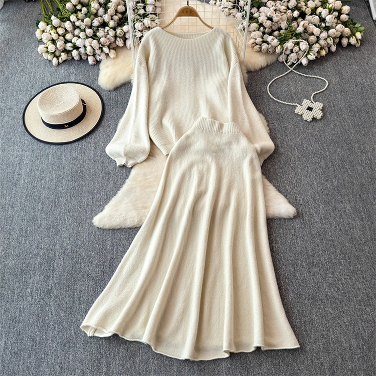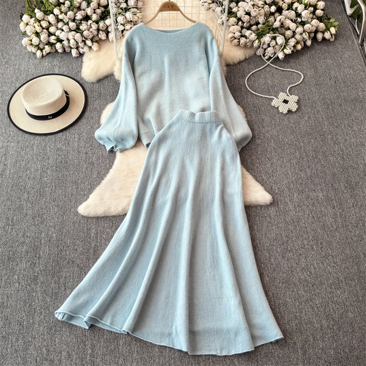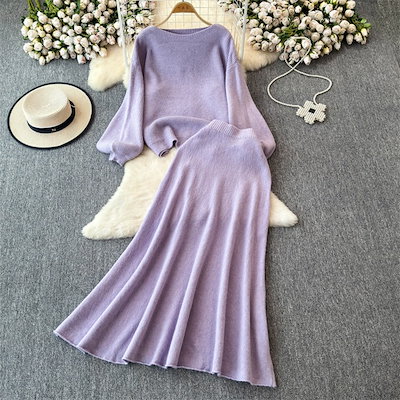 早い者勝ち セーター ラウンドネック ロングスカート セットアップ カットソー あったか 秋冬 ニットトップス ハイウエスト エレガント