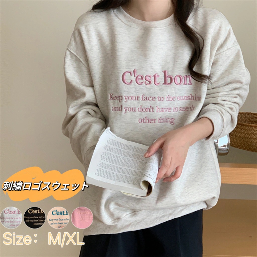 配色刺繍ロゴスウェットトレーナー レディース トップス スウェット 韓国ファッション トレーナー