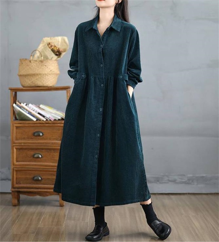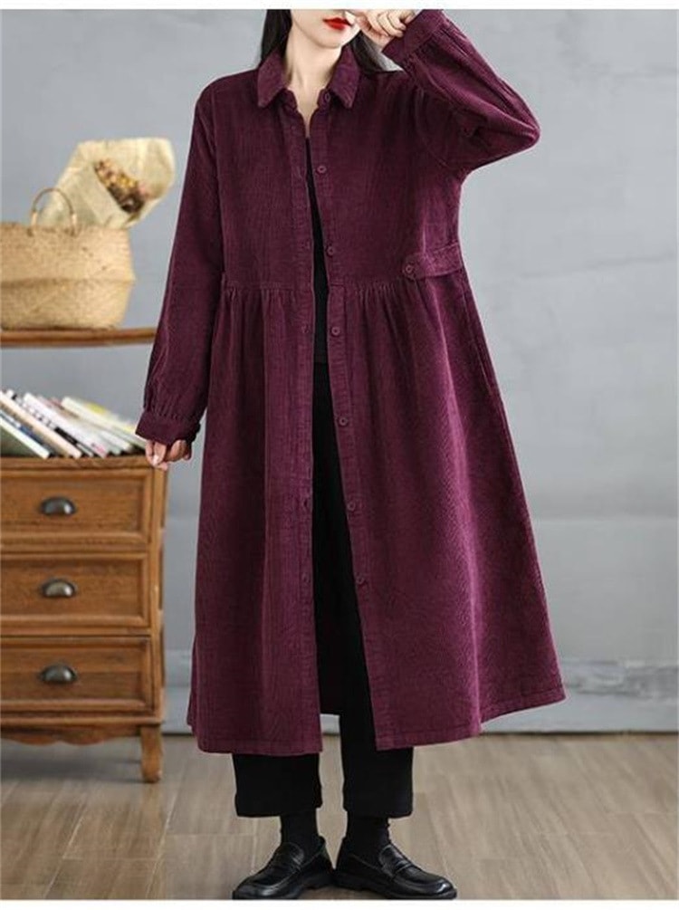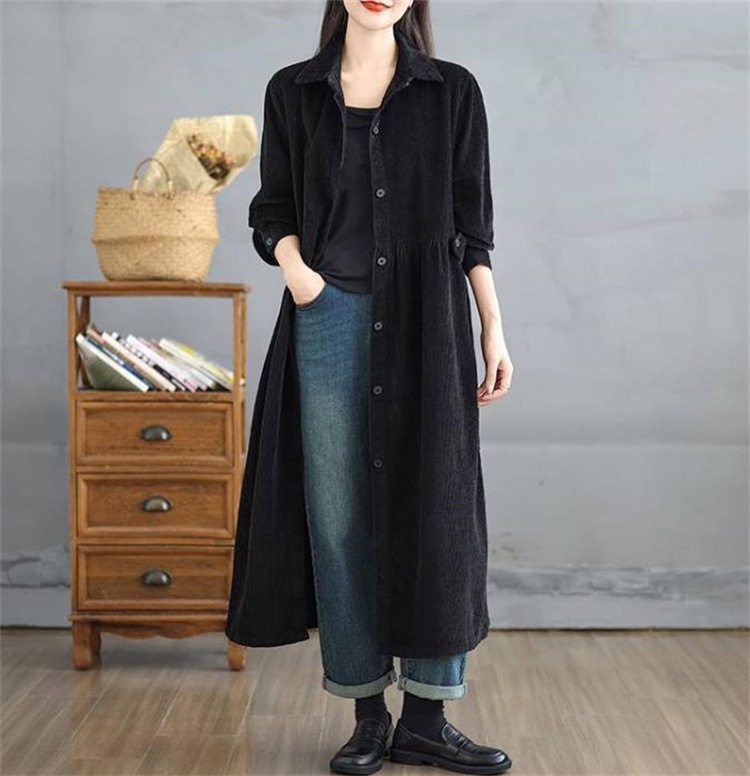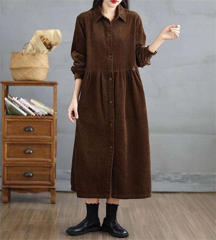 早い者勝ち レトロ 文芸 ワンピース コーデュロイ おしゃれな 通勤 単体ボタン トレンチコート ゆったりする コート ロングスカート