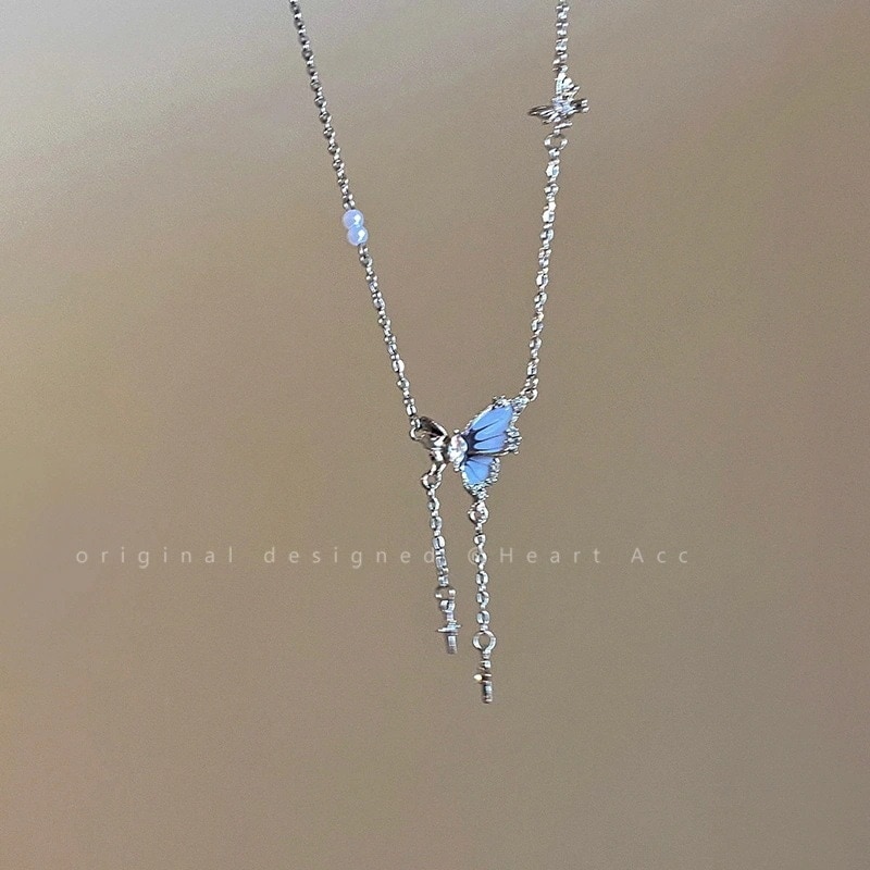 新作入荷/韓国トレンディー人気ネックレス 美しい首元ネックレスネックレス 春の蝶真珠ネックレス女性2026新しいアクセサリー鎖骨チェーンネックレス
