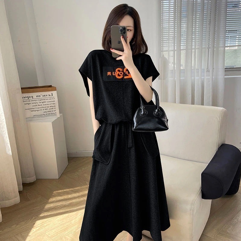セット アップ 夏レディース 大きいサイズ 怠惰な風 カジュアル 上下セット Tシャツ スカート上下2点セット 体型カバー着痩せ  韓国ファッション 夏 部屋着 ジャージ