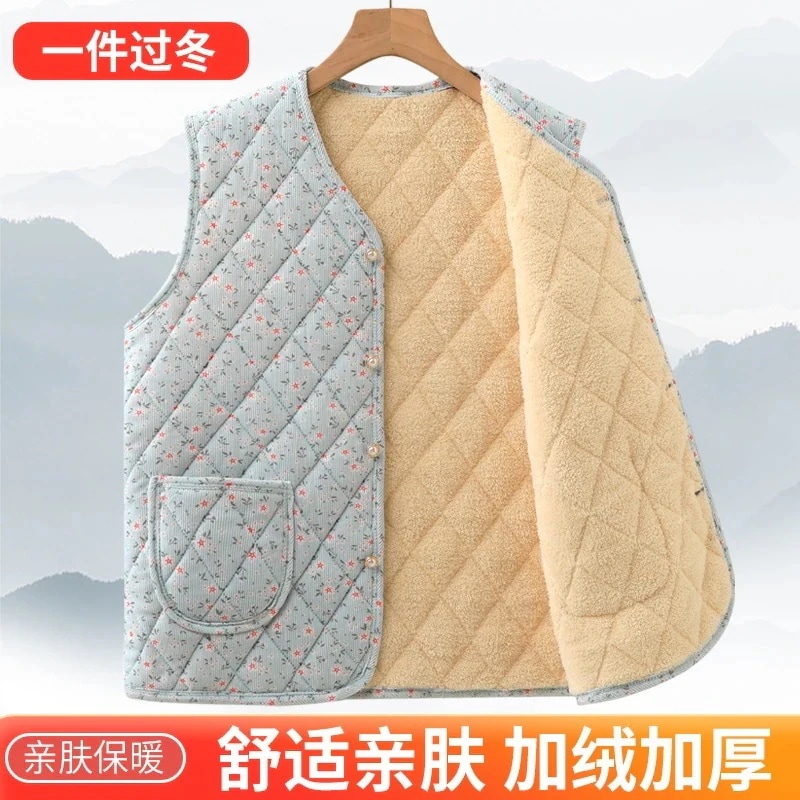 韓国人気 カラーライン ハルモニチョッキ おばあちゃんチョッキ かわいい 花柄 ベスト 裏起毛 あったか 極暖 秋冬 キムジャンチョッキ ベスト