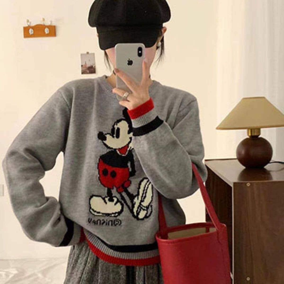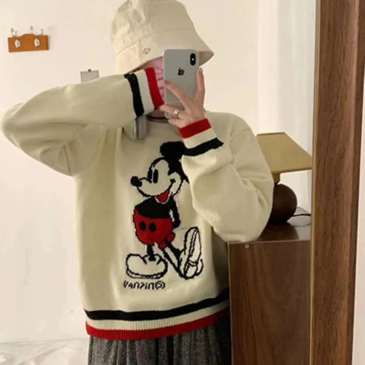 3color S-3XL薄手裏起毛2種類 秋冬 ニットトップス 韩国ファッション oversize ミッキー ディズニーセーター 男女兼用 ペアルック パーカーレディース ニット
