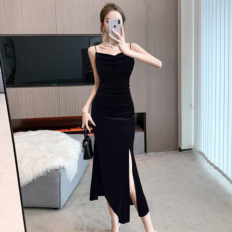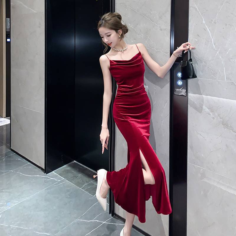 2025 年春にぴったりな大人っぽいエレガントなスタイルの洗練された赤いベルベットのスリップドレス