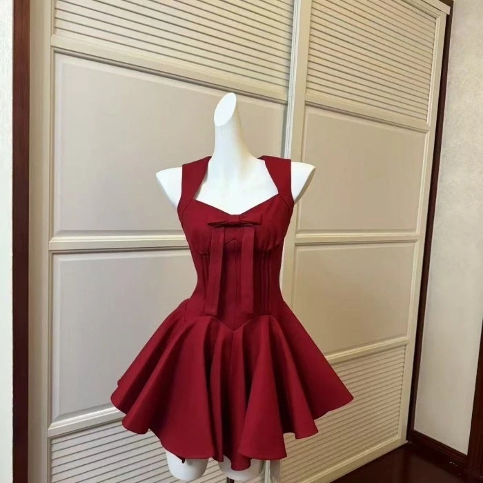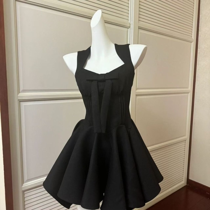 リボンが付いたプリンセス風のドレス高貴で優雅な雰囲気を醸し出しノースリーブでウエストにフィットしスリムに見えるバースデードレスにです
