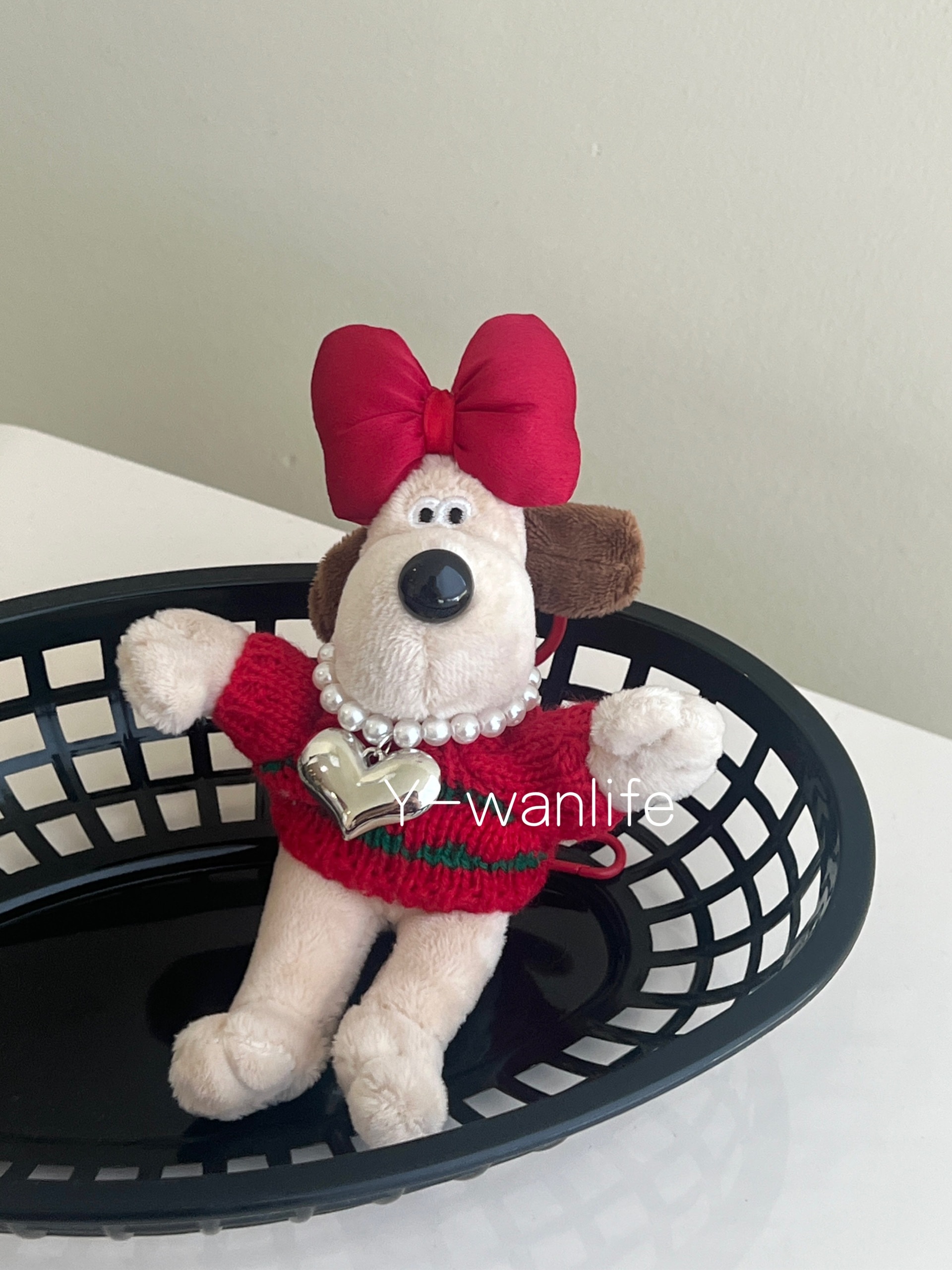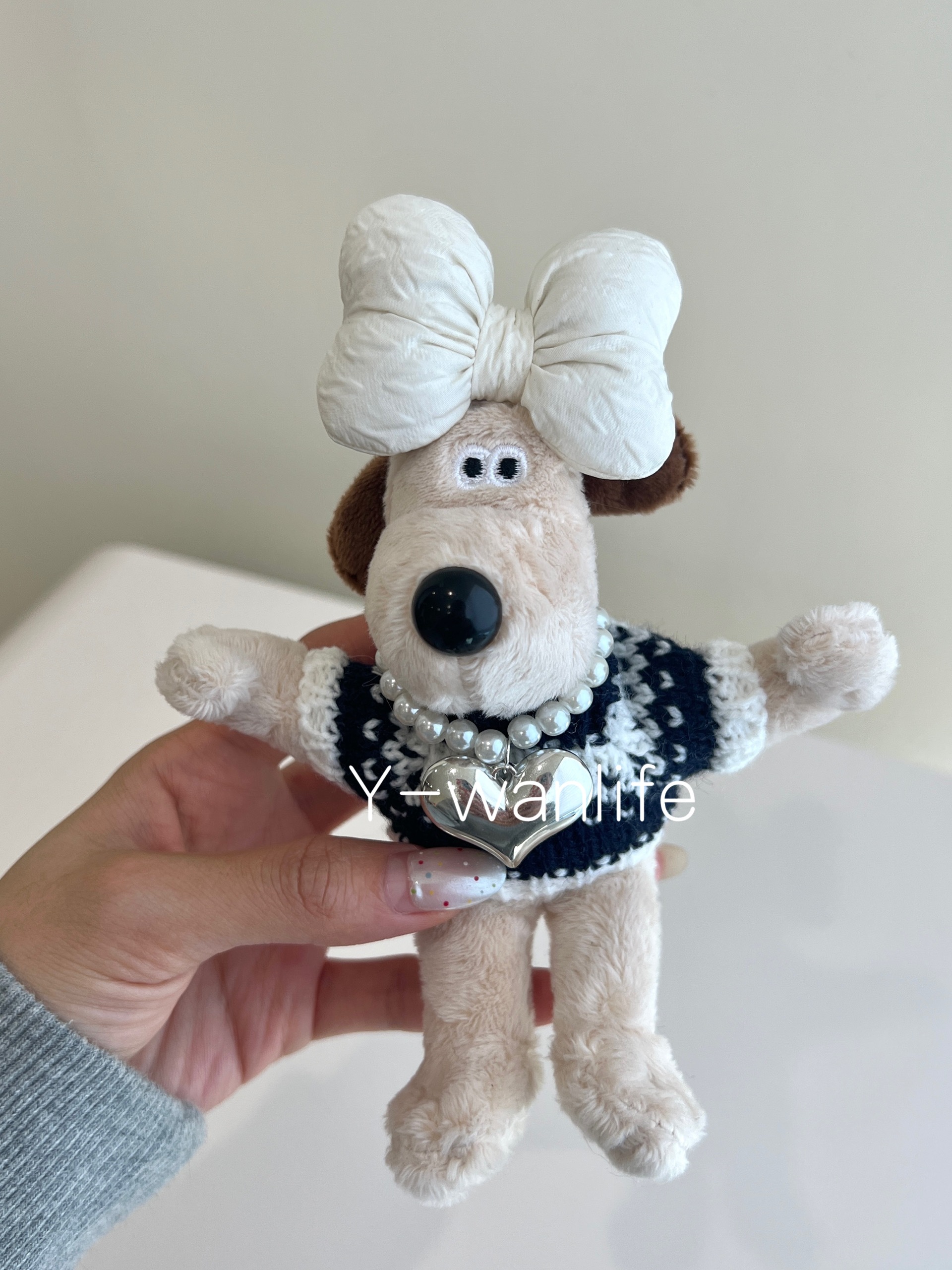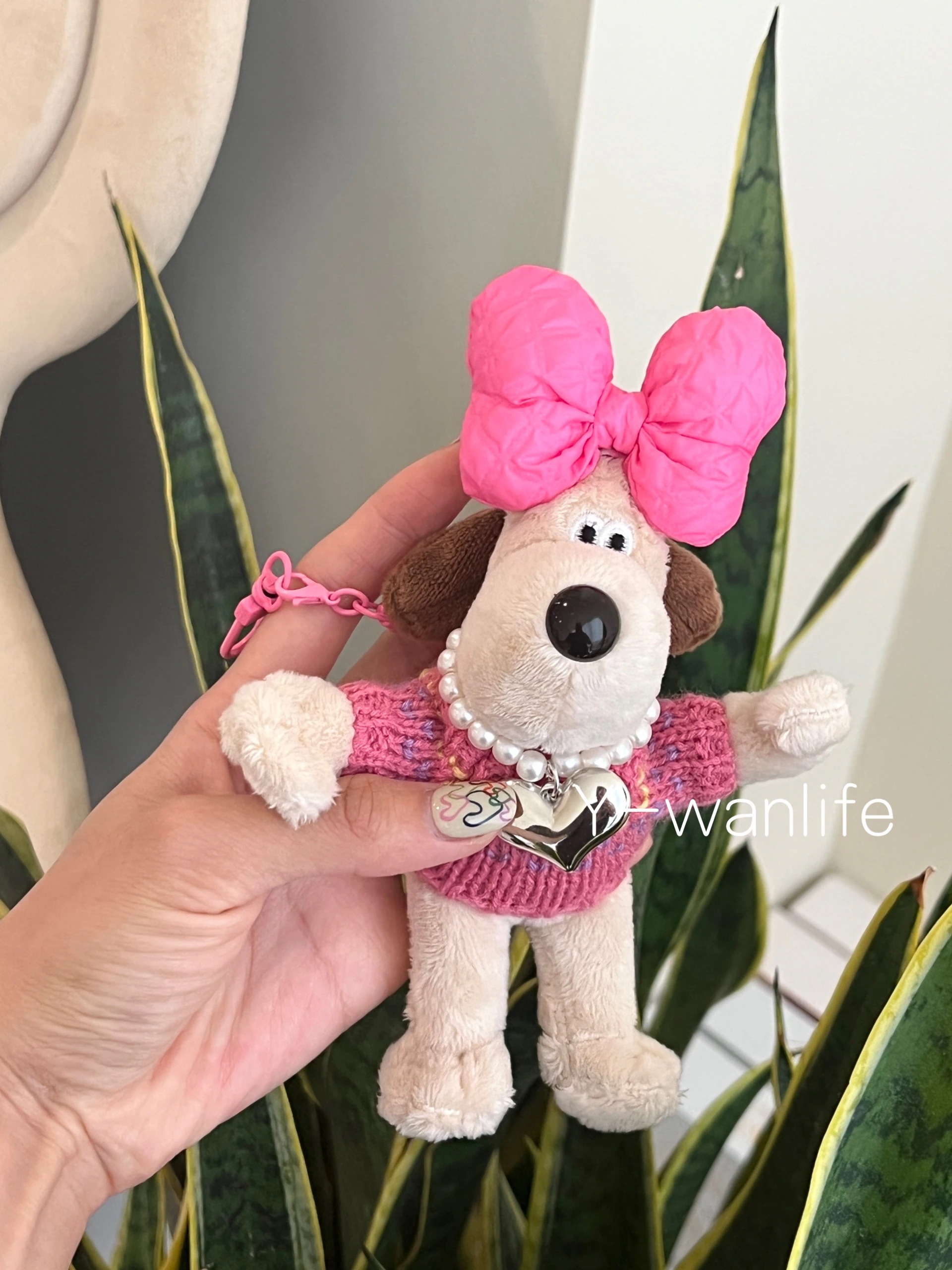 キーホルダー急速出荷キーホルダーグルミットかわいい犬のペンダントバッグチャームセーターネックレス弓人形子犬キーホルダーハッスレット装飾