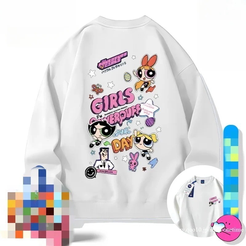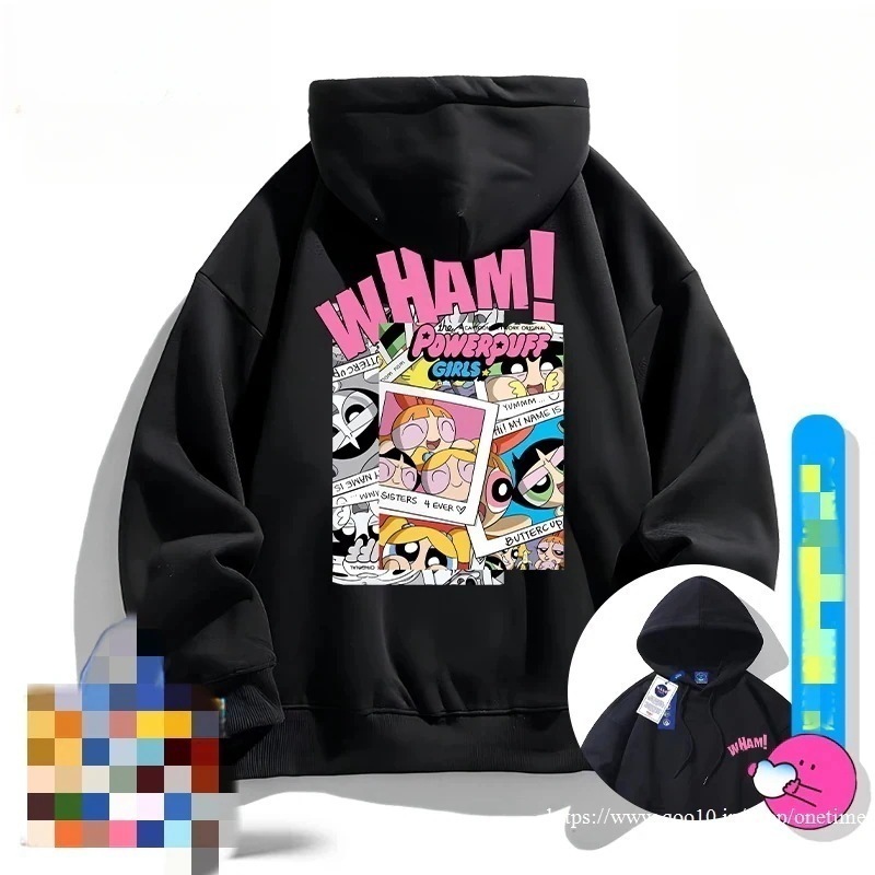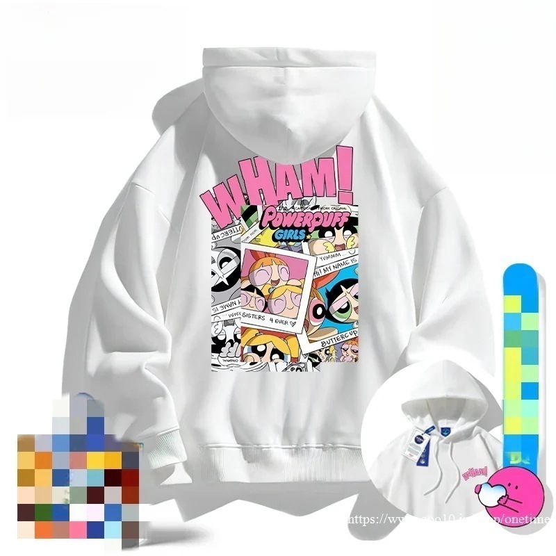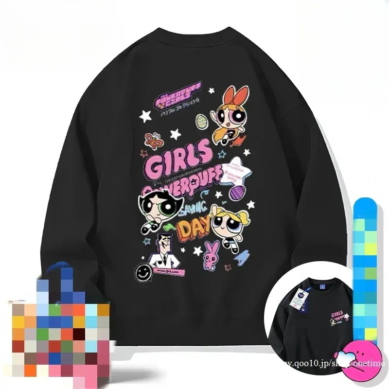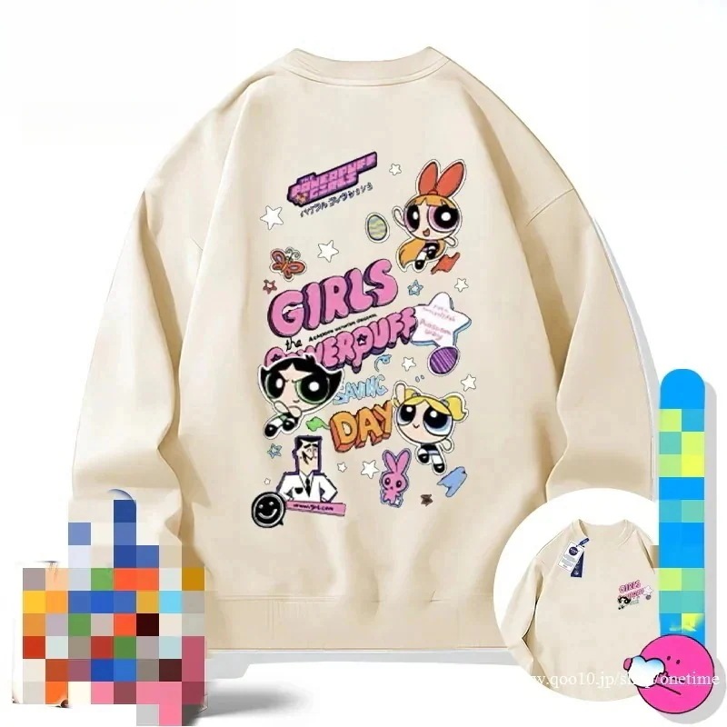 韓国 パワーパフガールズ 可愛い ゆったり トップス カジュアル プリント 男女兼用 ペアルックパーカーレディースパーカー ウェア 長袖パーカージャケットア