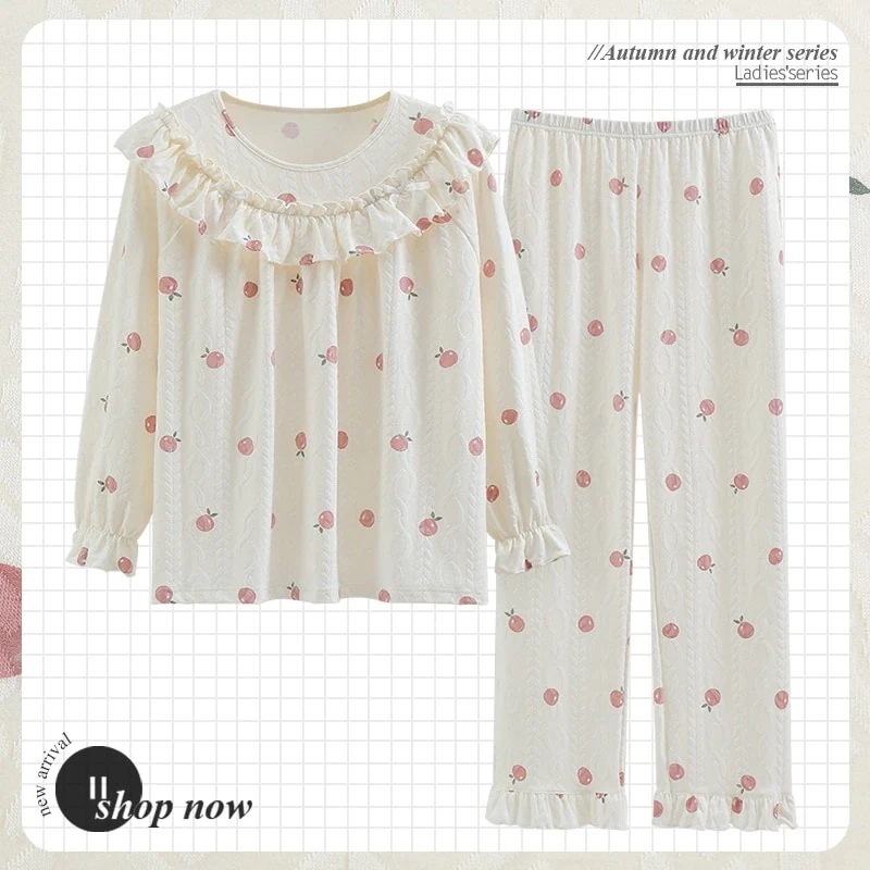 新入荷韓フレッシュチェリーチェック2点セット可愛パジャマィー パジャマ 上下セット ウェア 部屋着 人気 長袖 パジャマ m-3xl