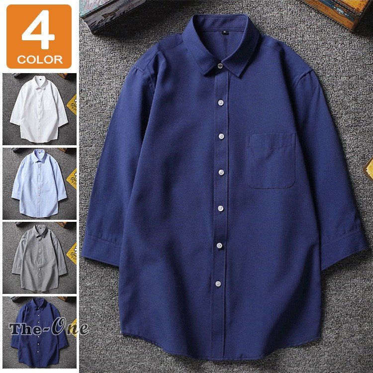 新作zq 七分袖 シャツ メンズ 通勤 カジュアルシャツ 服 通学 トップス 無地 七分袖シャツ