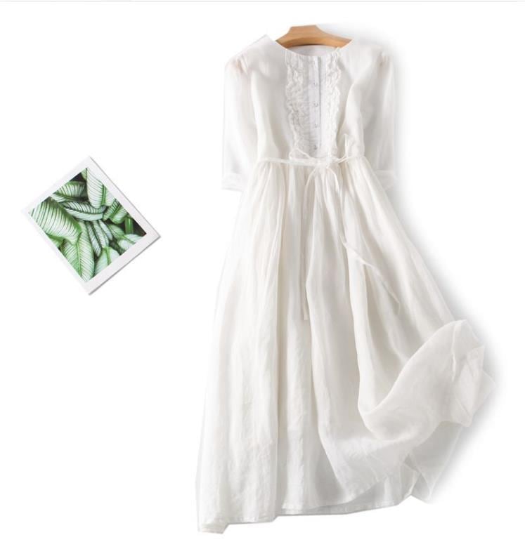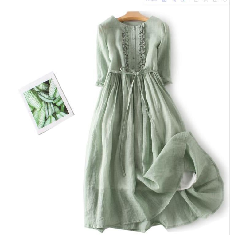 【新作登録】ワンピース ロングワンピース シャツワンピース 綿麻 リネン ノーカラー 7分袖 シャツ ワンピ シャツワンピ ロング ロングワンピ きれいめ 春 夏 Aライン シンプル カジュアル リ