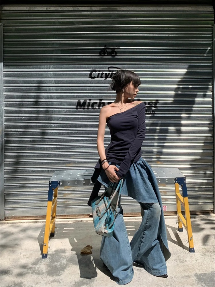 激安セール ジーンズ 大きいサイズ イレギュラー ロングパンツ フェイク2ピース スラックス 2024秋 オリジナル キュロット トレンド