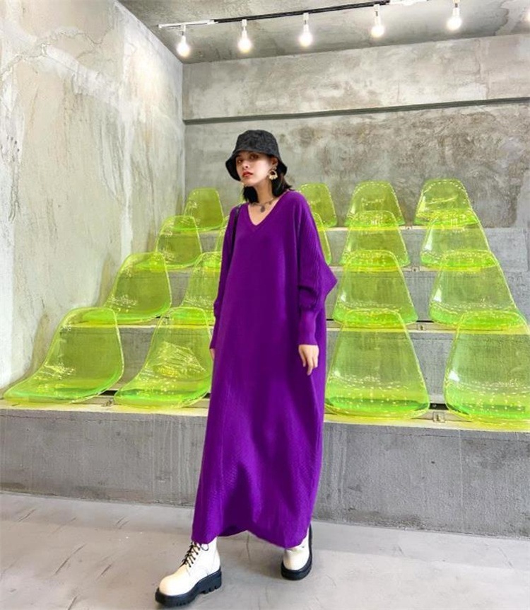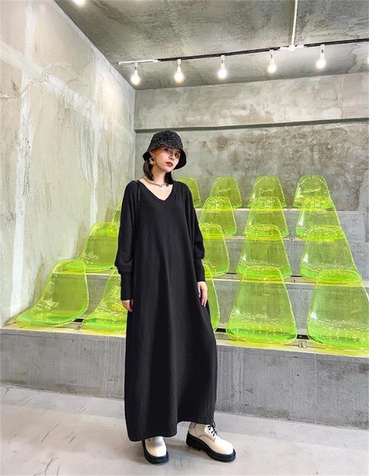 早い者勝ち ロング あったか ニットワンピース 気質 ロングワンピース 秋冬 新品 スリム ロングスカート 怠惰な風 あったかグッズ vネック 長袖