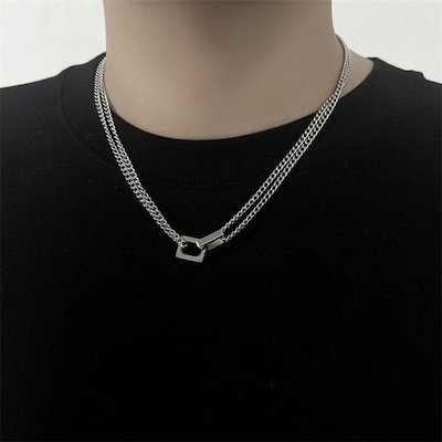 ダブルチェーン ネックレス シルバー メンズ レディース スクエア モチーフ チェーンネックレス ユニセックス シンプル 二連