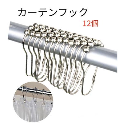シャワーカーテン フック ローラーボール 12個セット S字フック 滑らか開閉 バスカーテン 収納フック 多用途 メッキ ユニットバス キッチン クローゼット
