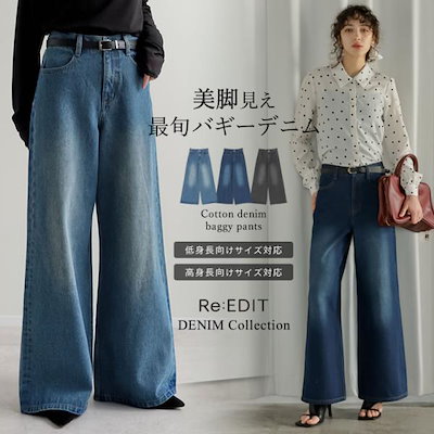 リエディコットンデニムバギーパンツ