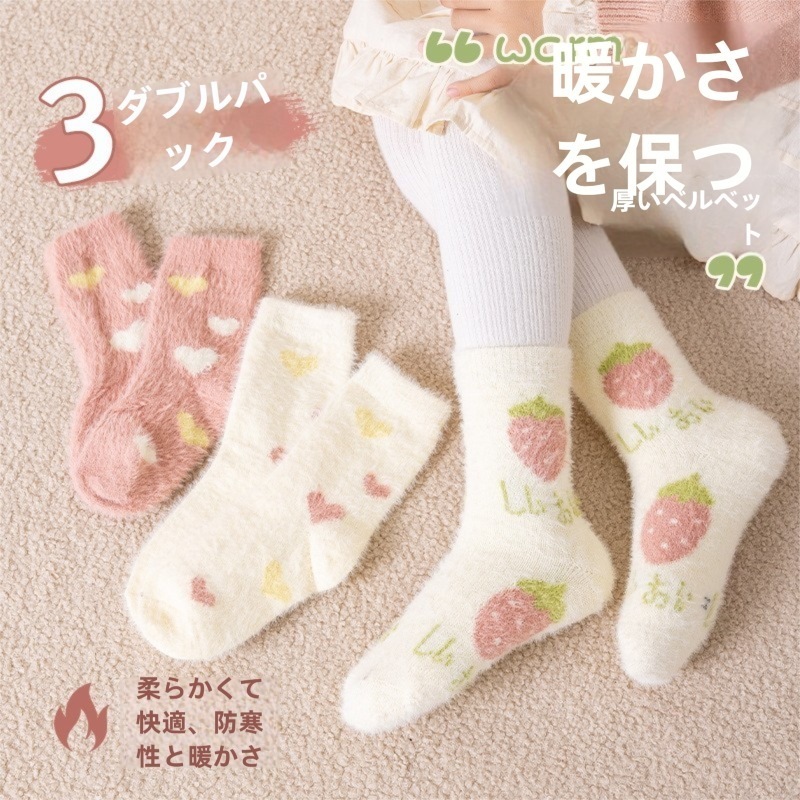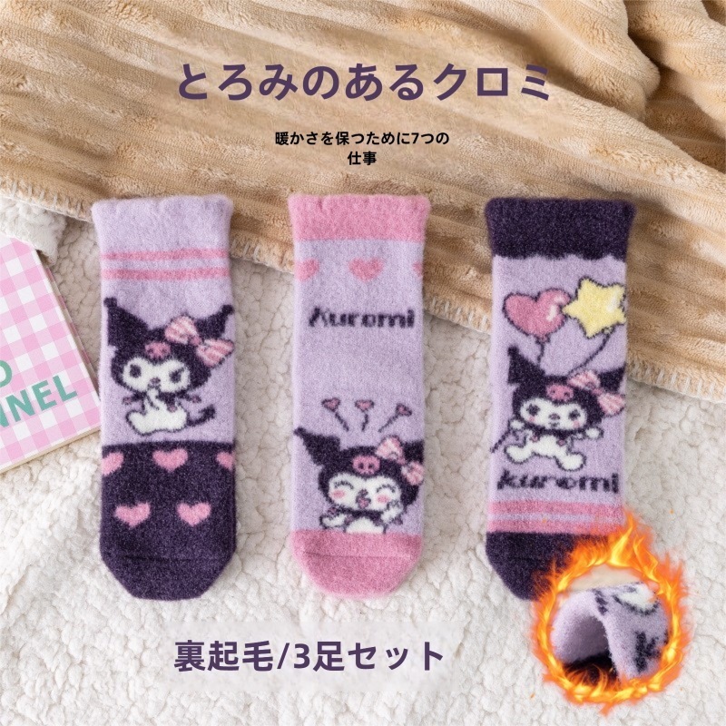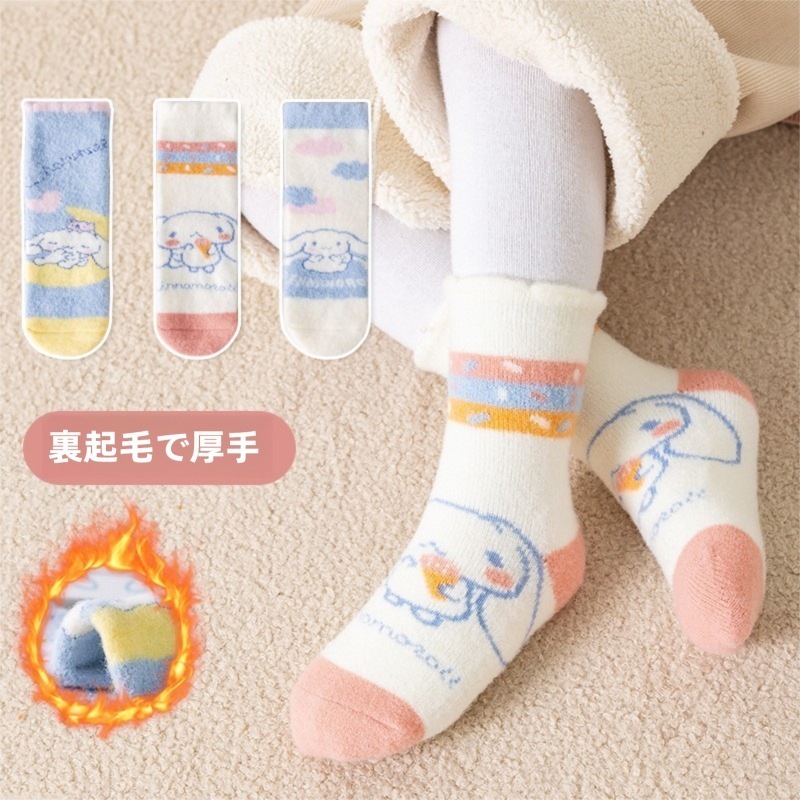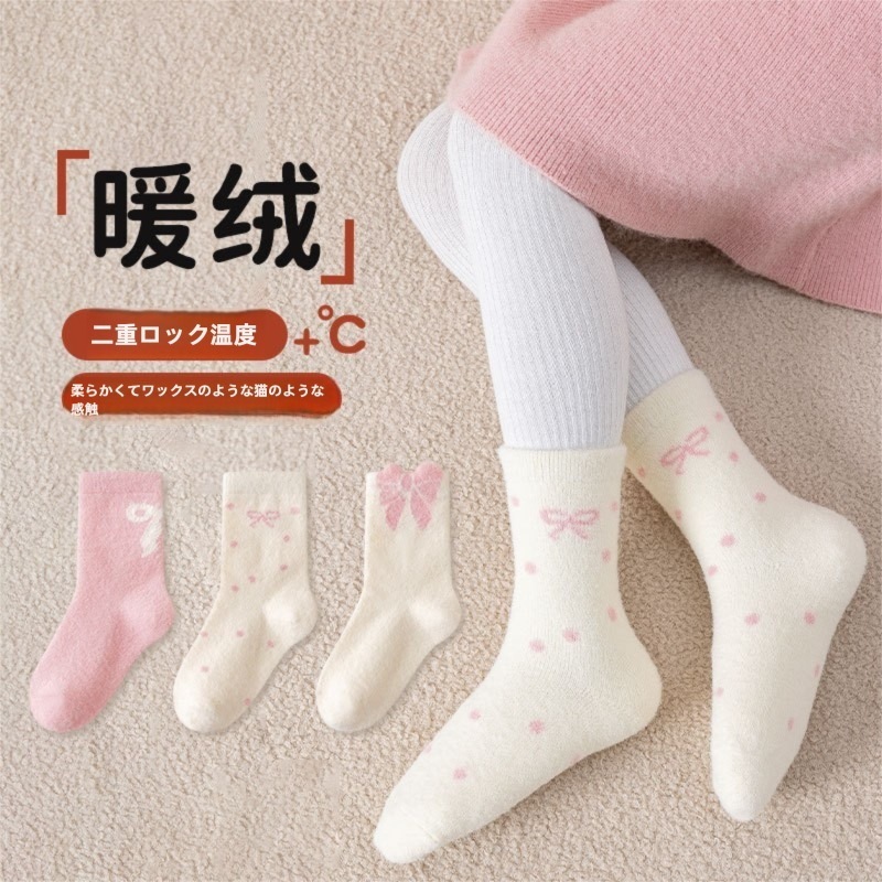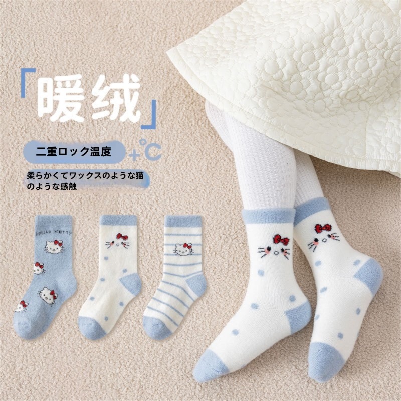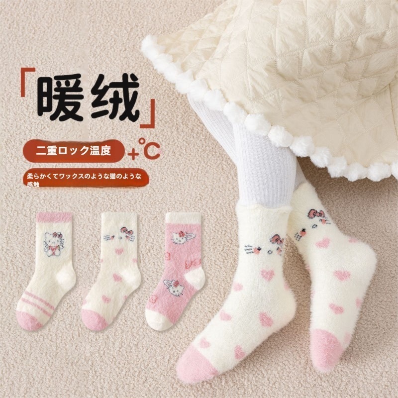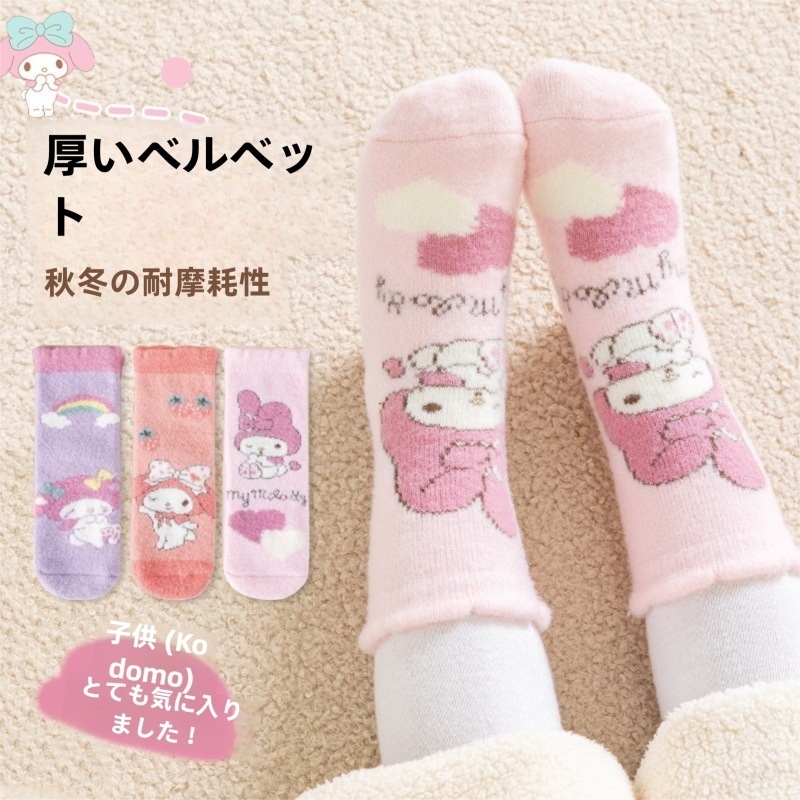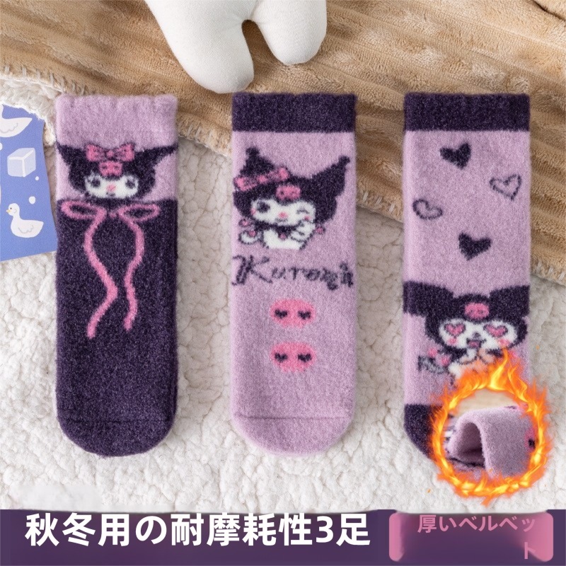 小悠兔女童袜子冬季卷绒气球库洛米可爱保暖袜加绒加厚中筒宝宝袜