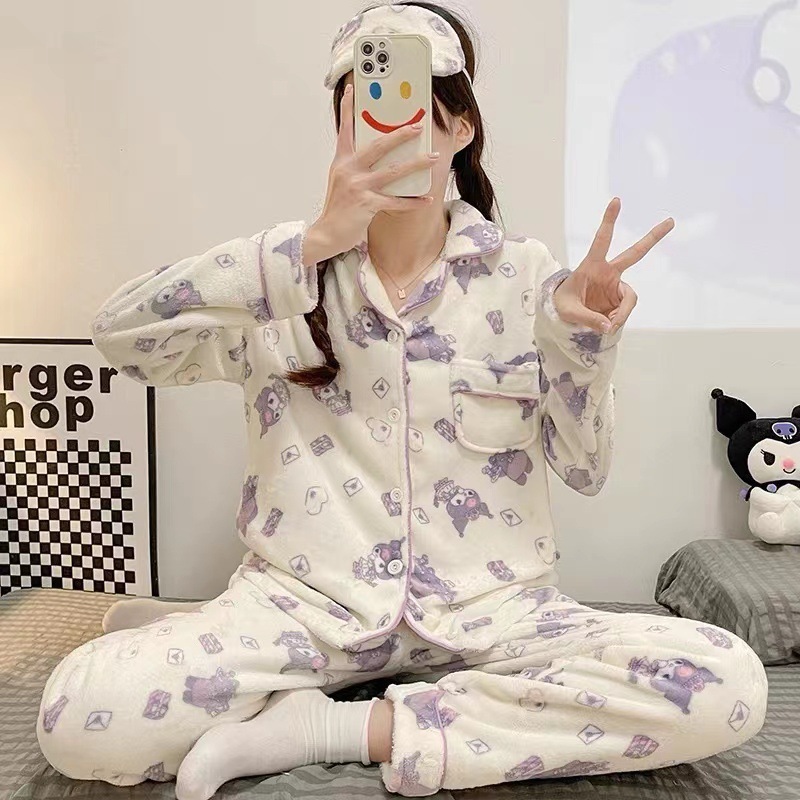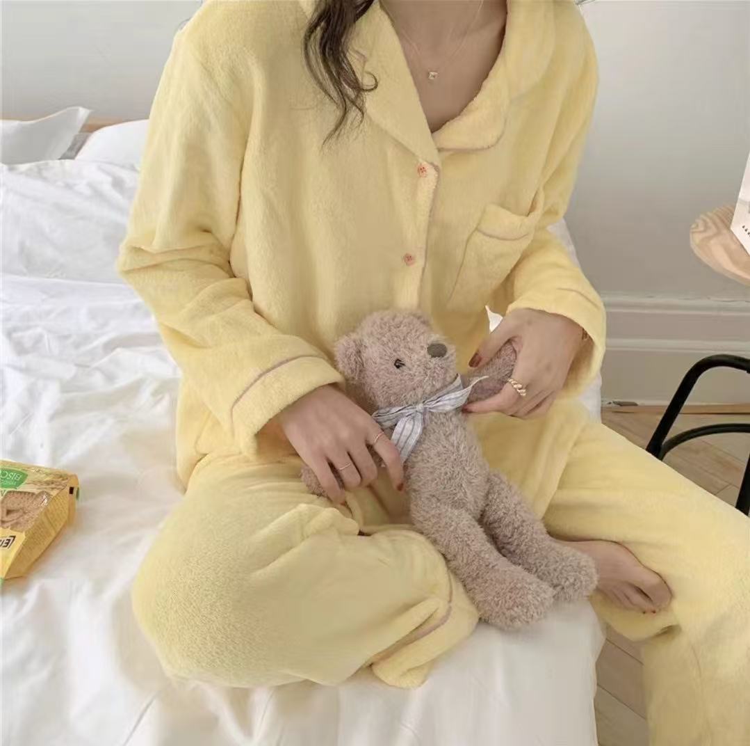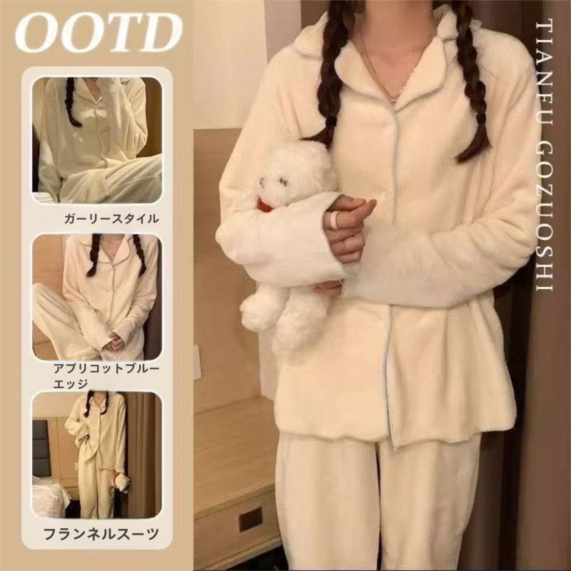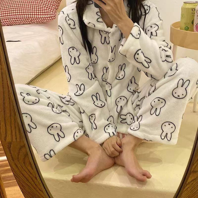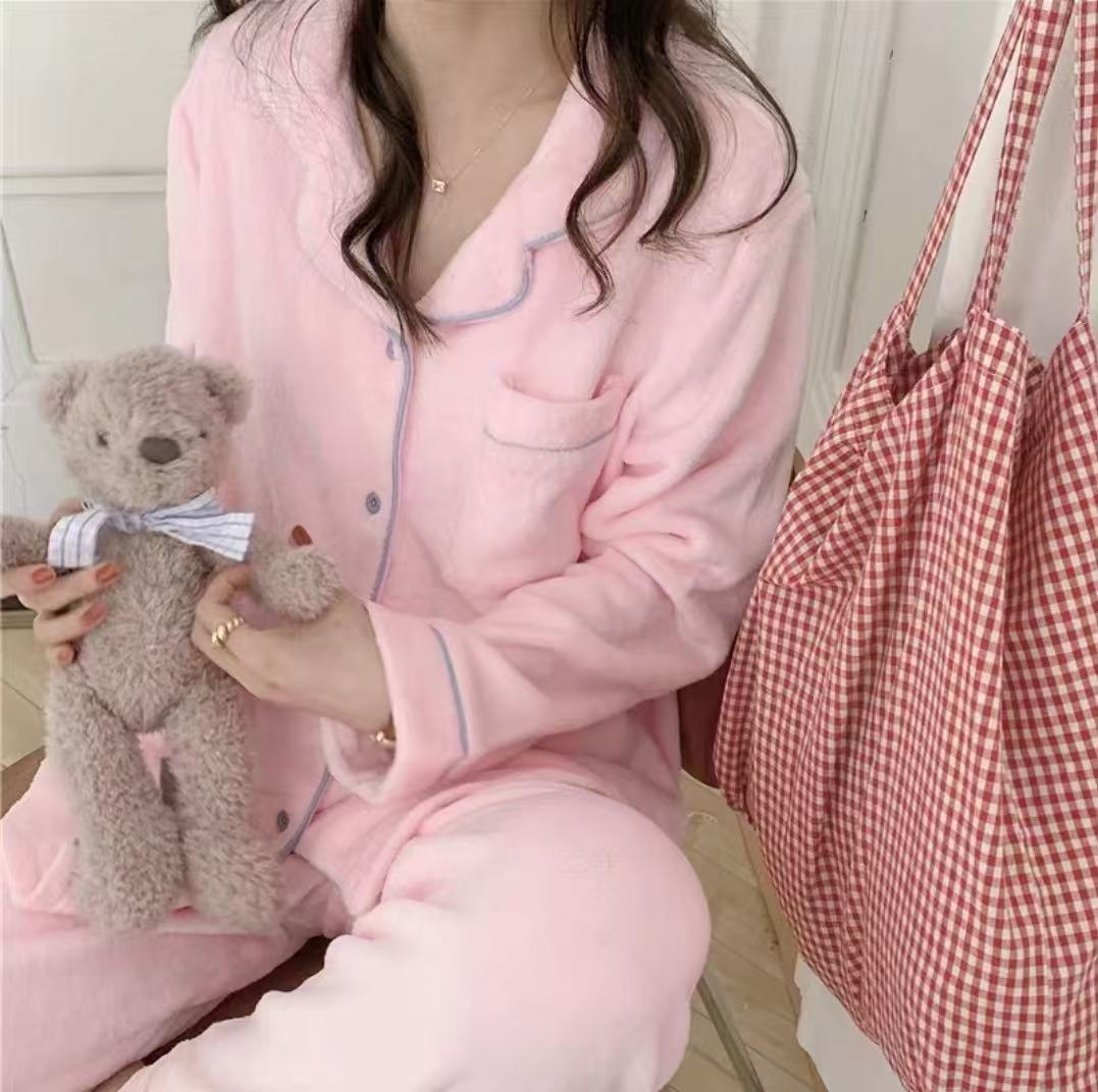 ジェイドシナモンドッグコーラルベルベットパジャマ女性の秋と冬プラスベルベット肥厚フランネル暖かいホームウェアセット