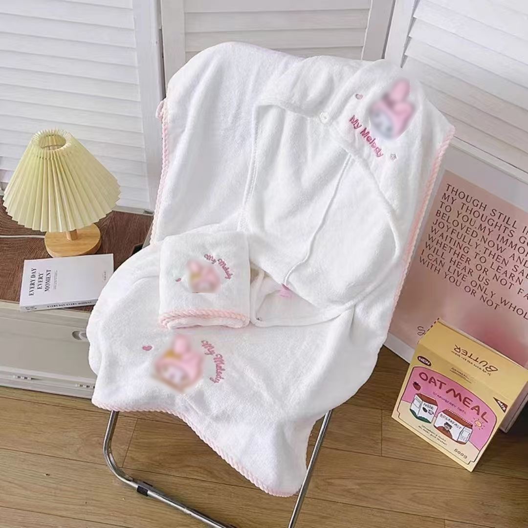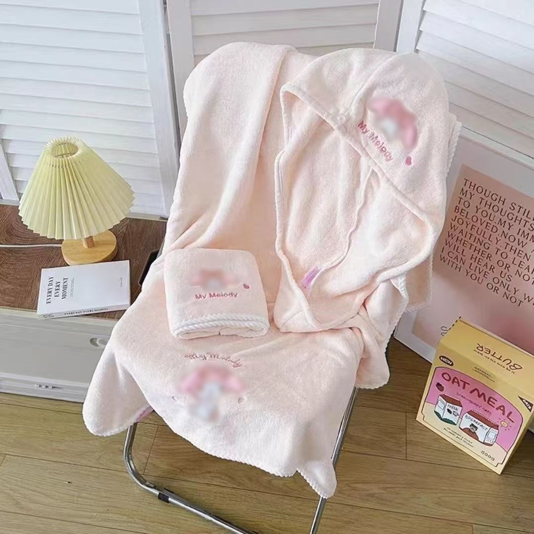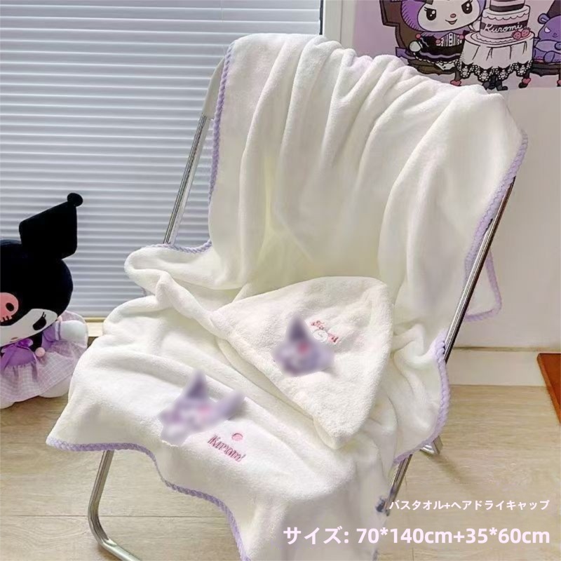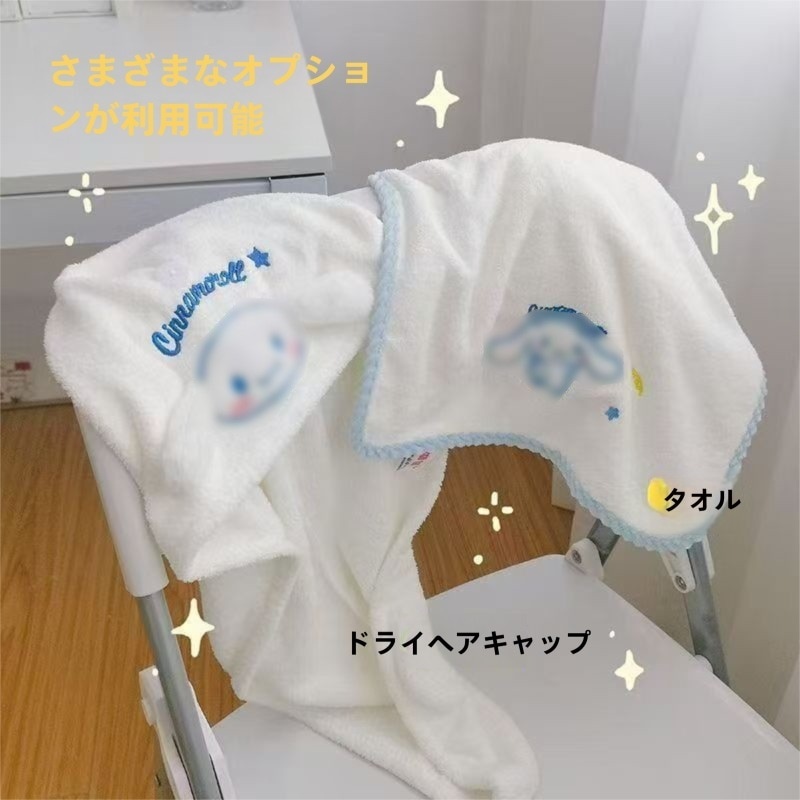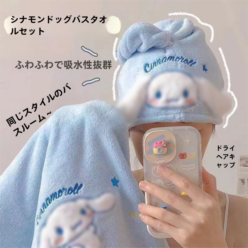 タオルとバスタオルセット 可愛い漫画柄 女の子用 ドライヤー不要のヘアキャップ 厚手で毛が抜けにくいバスタオル