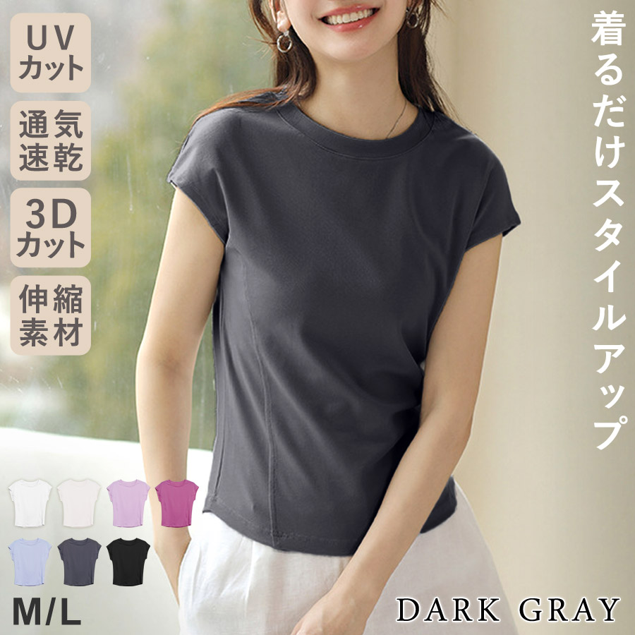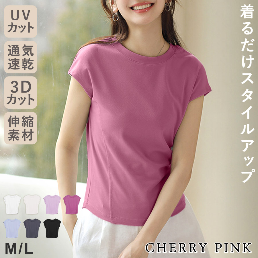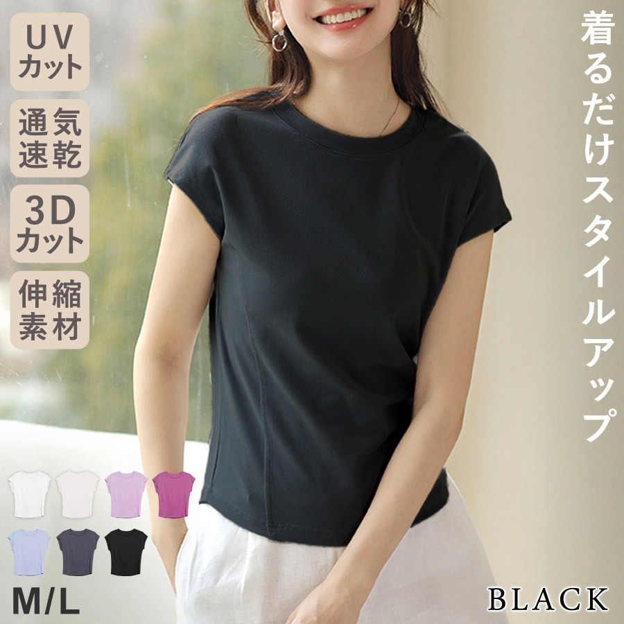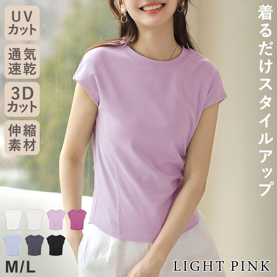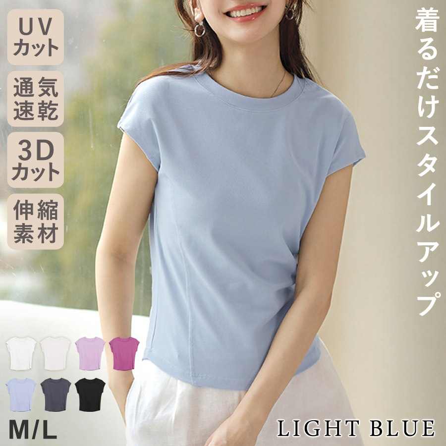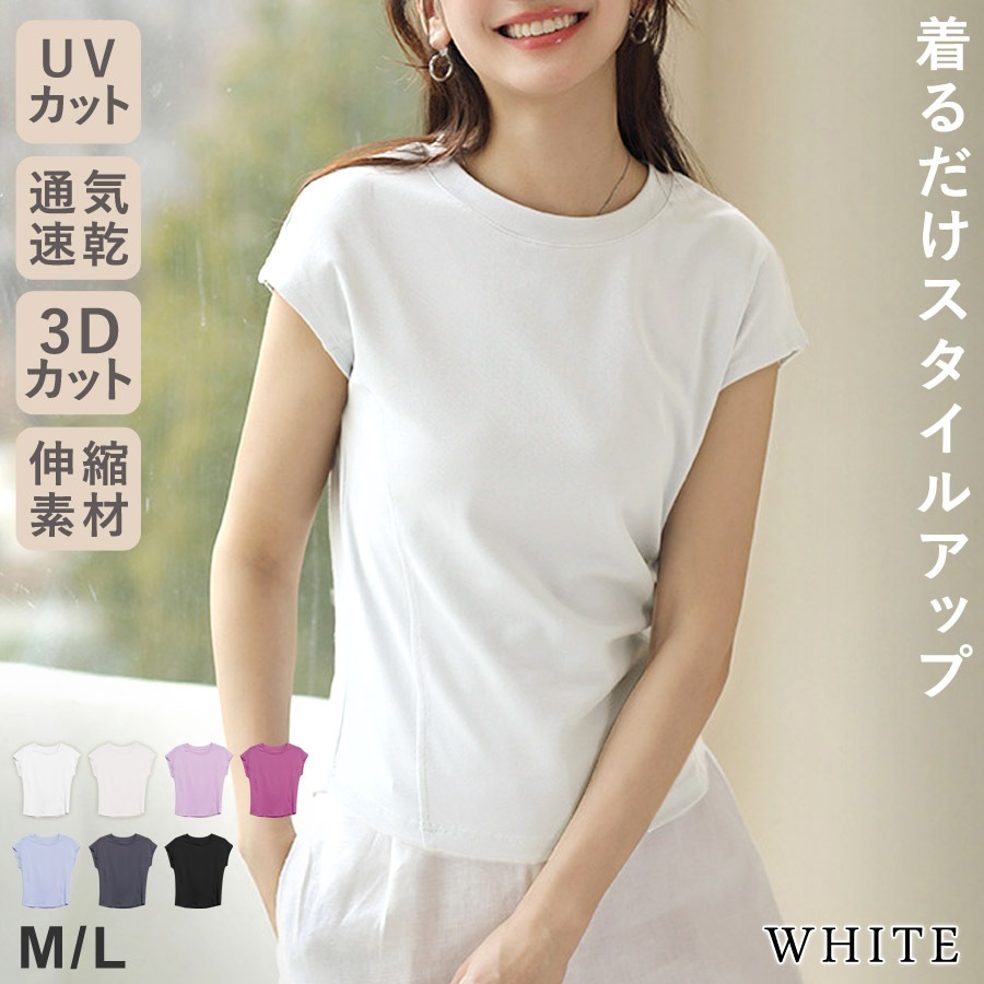 Tシャツ レディース UVカット 着痩せ UV 3D スタイルアップ フレンチスリーブ 半袖 通気性 速乾 春 夏 無地 ストレッチ 綿 コットン 伸縮性 白 黒 トップス