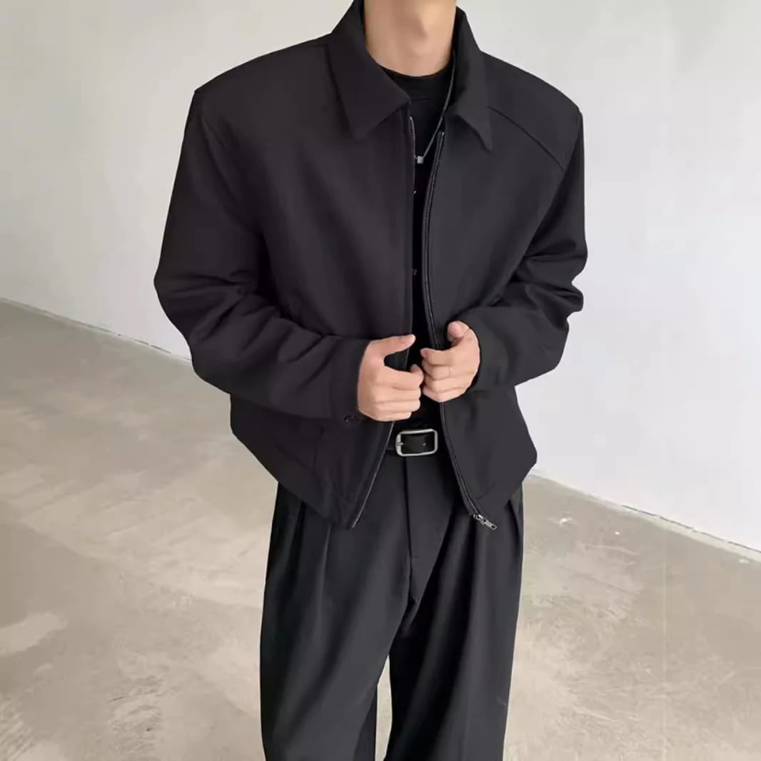ショート丈パッド付きジャケット男性用春秋シーズン高級感ワイルドでクールストリートブランドスーツジャケットラペル付きベースボールジャケット